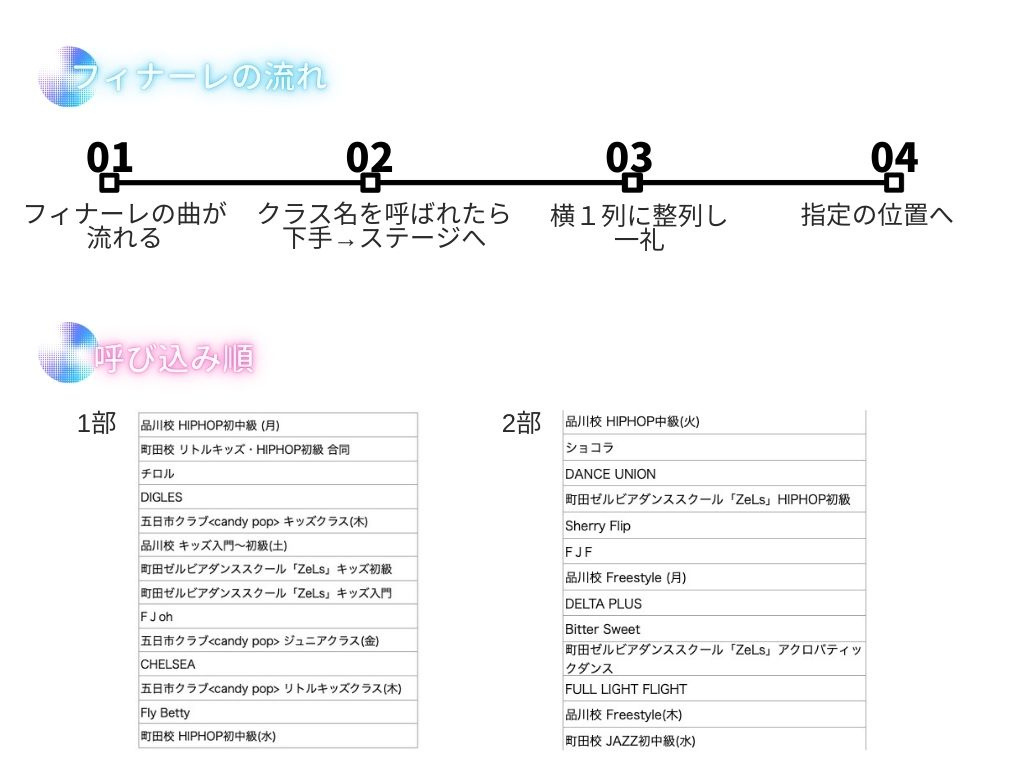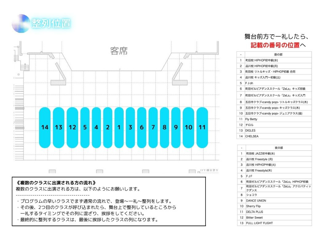 クラス内の整列順や登場の仕方などはお任せします!